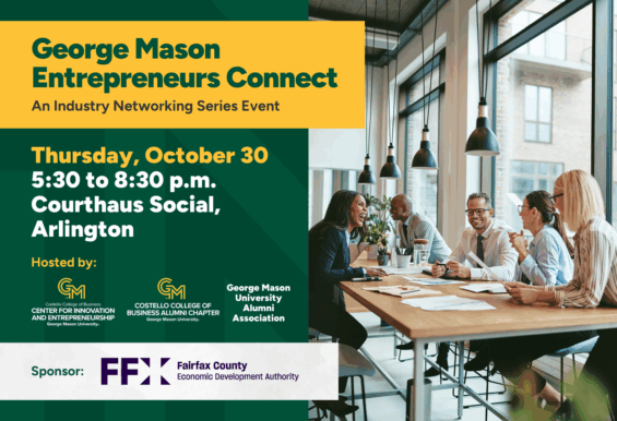 Join fellow George Mason alumni entrepreneurs for an evening of networking at Courthaus Social in Arlington. Hosted by the Center for Innovation and Entrepreneurship and the Costello College of Business Alumni Chapter, and partnering with the Alumni Association, this event will bring together individuals in the entrepreneurial community from George Mason and Costello communities for meaningful conversation and connections!